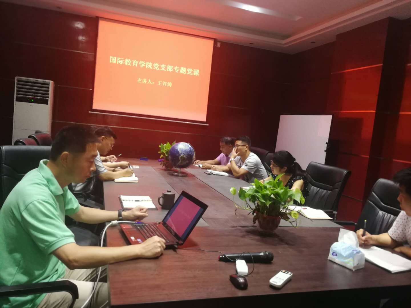 6月28日下午,国际教育公司党支部在1号教学楼211党员活动室集中上党课。经理王许涛作“学习党的十九大精神”专题讲座,申博sunbet在公司党员参加了学习。