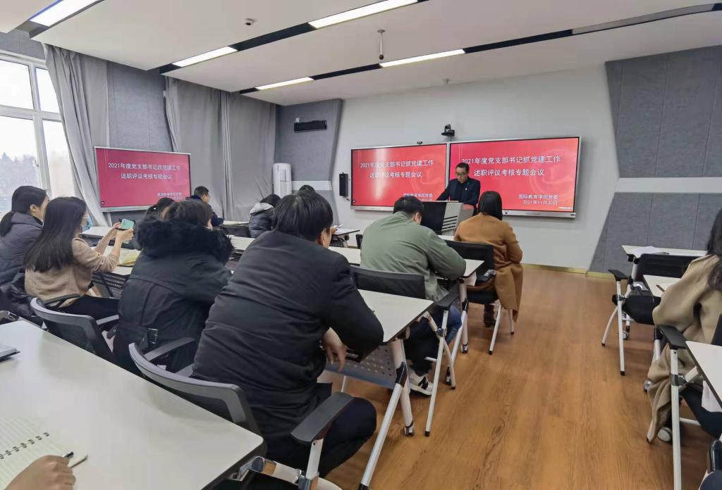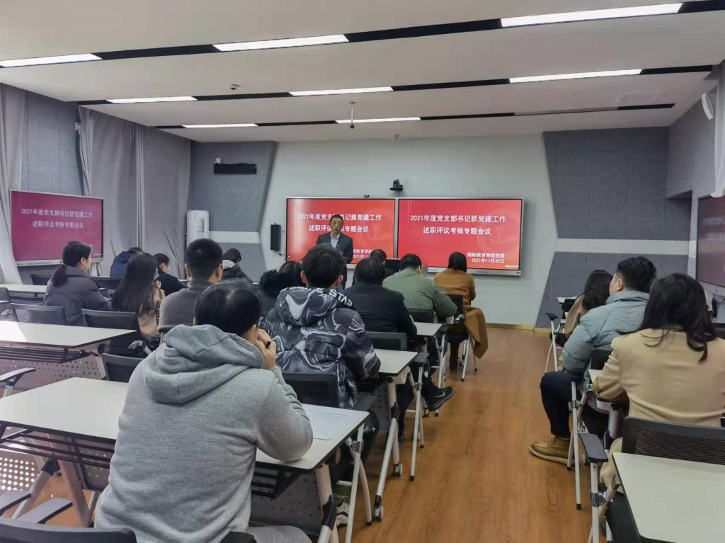 (通讯员:肖婧婧)11月30日,国际教育公司党委在和谐校区室召开2019年党支部书记抓党建工作述职评议会。国际教育公司党委委员,师生党支部书记和师生党员代表参加会议。会议由公司党委书记吕鹏飞主持。