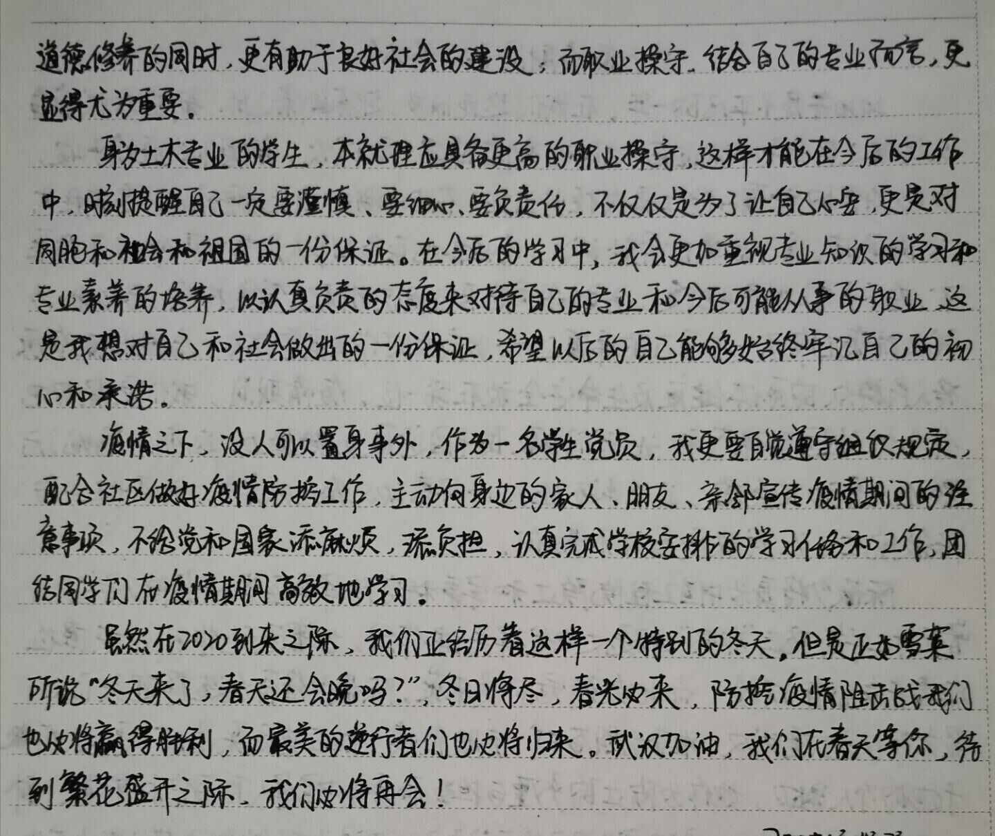 通过此次对《全民抗疫与坚定中国特色社会主义制度自信》主题团课的深入学习,我们对中国的社会主义制度有了更深的理解,也大大增加了同学们战胜疫情的自信心和大国风范的民族自豪感。相信在党中央的带领下,全国人民携手努力,一定能够共克时艰,早日战胜疫情。