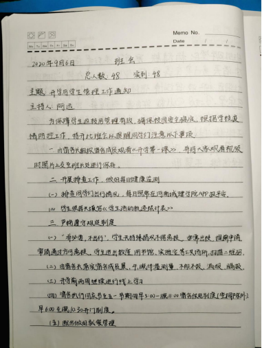 班会课上,各辅导员重点讲解了《关于做好秋季学期开学后员工管理工作的通知》《申博sunbet发热病人处置预案和流程》等相关管理规定,并逐一强调开学后日常管理、体温检测、上课、就餐、防疫卫生等日常规范和应急处置流程,教育员工严格遵守疫情防控纪律规范,心怀敬畏,关注自身健康。此外,老师们还就“珍惜粮食、拒绝浪费”进行了强调,倡导同学们要爱惜粮食、文明就餐,取之有节、用之有度,“光盘行动”、从我做起。