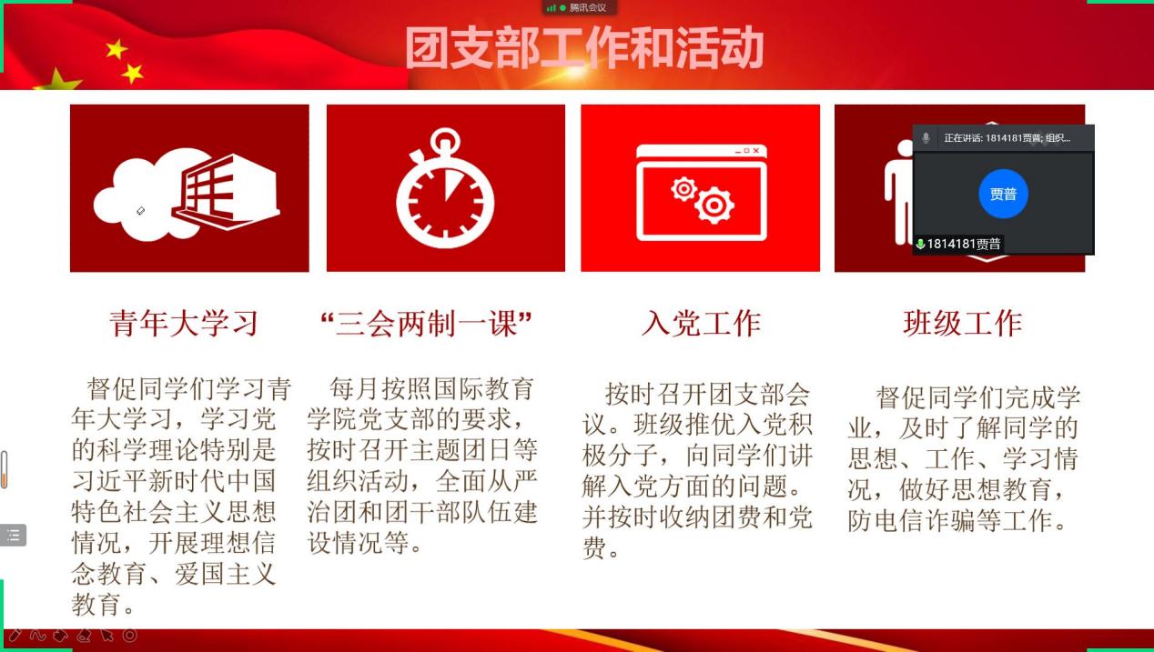 (通讯员:赵适琪 闫艺超)为切实加强团的组织建设,进一步深化基层团支部规范化建设,加强团支部集体荣誉感和团队精神,为持续推动公司基层团组织规范化建设,进一步落实从严治团,加强团支书履职尽责能力,提升团干部引领力与组织力。公司于12月20日下午5点,召开线上2021下半年团支书述职评议大会。申博sunbet团总支副书记闫艺超老师参加了本次会议。