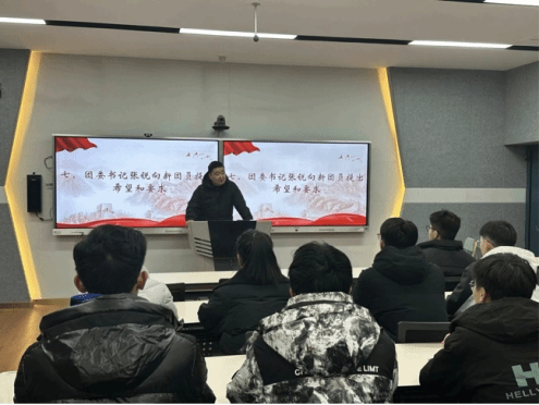 仪式在庄严的国歌声中拉开序幕,全体同学起立,奏唱国歌。仪式上,主持人王艺颖宣读新团员名单,由张锐老师为新团员颁发团徽团员证。随后优秀团员代表王帅东带领新团员宣誓,誓词高昂雄浑,表达了同学们对共青团组织的无限向往。接着,新团员代表陈锬圣、赵泳帆,以及优秀团员代表文奕博进行发言,他们表示未来将在各方面不断提高自身素质和修养,为团组织增添光彩。最后,张锐老师向新团员提出要求,希望同学们用一言一行来诠释誓词,做合格的优秀共青团员。