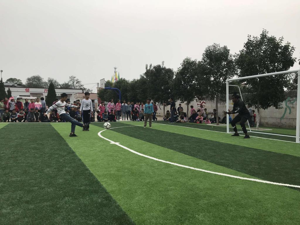 扶贫队伍来到了库区第二小学,给这里的孩子送来了秋日里的一丝温暖,希望他们能有一个丰富的课外娱乐活动。自建校以来,由于经济落后库区第二小学长期空缺体育老师并缺少大量的体育用材,为此申博sunbet给孩子们带来了足球、篮球等众多体育用材希望他们能够不忘初心,砥砺前行。同时由河南城建最出色的足球射门手“圆圆”为这里的孩子们示范了正确的足球姿势,并与孩子们展开了一场激烈的足球比赛。随后同学们为孩子们展示了智能舞蹈机器人表演各种高难度的舞蹈,让孩子们深刻的认识到了科技的力量。