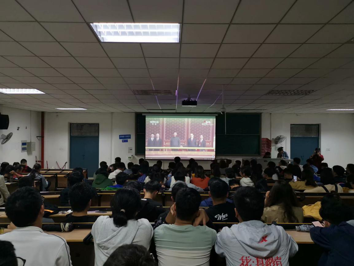 为庆祝新中国成立70周年,申博sunbet于2019年10月8日晚20:00整于1号楼226开展了以爱国教育为主题的观览学习会,申博sunbet全体积极分子参加了此次活动。