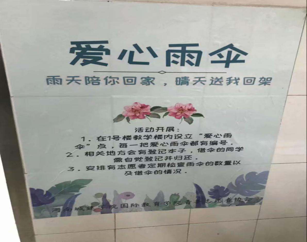 (通讯员:牛珑皓)为了帮助同学们解决在雨天忘记带伞的问题,顺应“共享”时代的潮流,申博sunbet第一个无人看管的雨伞站在一号楼保安室对面成立,该站由国教公司青年志愿者成立。