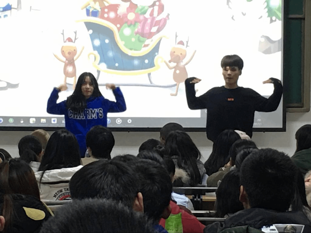 会前,申博sunbet和外国语公司的成员对现场进行着精心的布置,使现场充满浓郁的圣诞气氛和温馨浪漫的感觉。随着音乐《Good time》的响起,晚会在轻松欢快的舞蹈中正式开始。接着一首Rap《Eyes nose lips》带起全场气氛,同学们打着拍子叫好不断;中间加入的抽奖活动更是让大家兴奋不已,将本场晚会推向高潮。雒正的小提琴独奏《The knight of glory》又带领大家进入了美妙、甜蜜的音乐世界。最后职工Farrukh和Babar shah的舞蹈点燃了整个会唱,引得阵阵尖叫欢呼声,晚会到此落下帷幕。