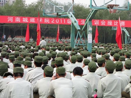 9月25日下午,公司2011级新生军训会操比赛在校篮球场隆重举行,部队领导、武装部领导、各系书记参加活动,军训教官和4500余名新生在现场观看了比赛。此次比赛由公司武装部组织,评委由3名军训团的营长和公司4名退伍军人担任。