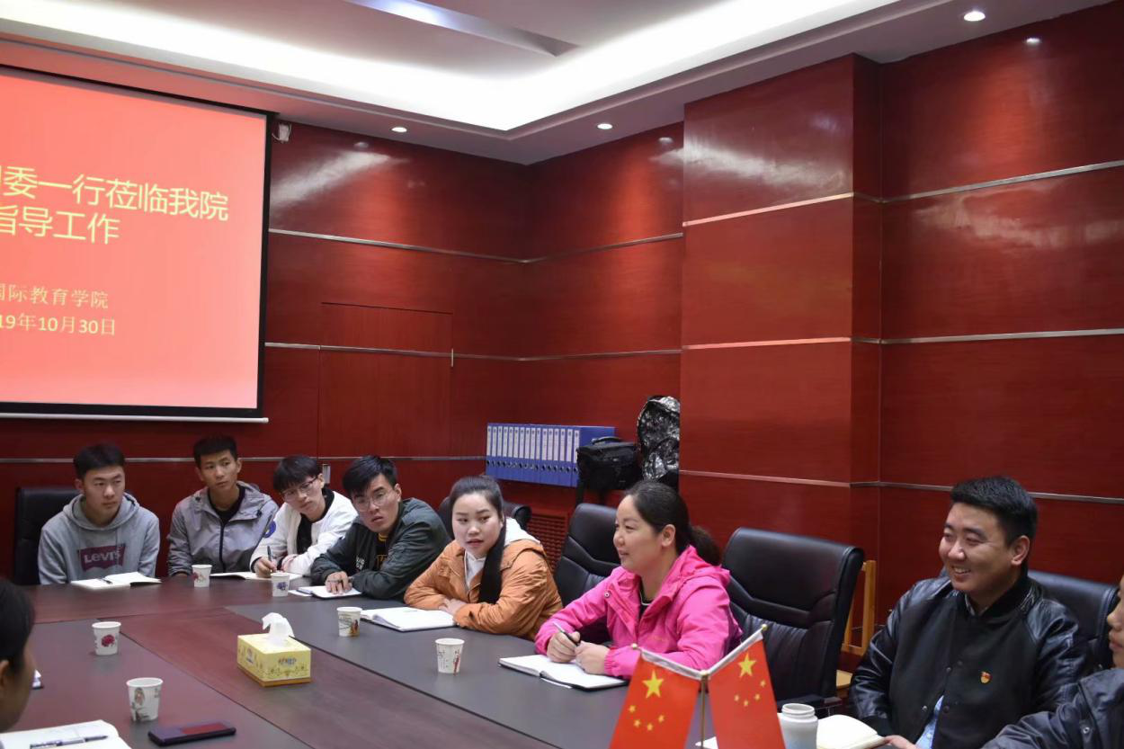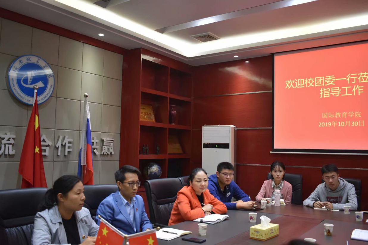 10月30日上午,校团委团委书记孙方行一行到公司调研团学工作。 国际教育公司党支部副书记刘艳杰、团总支副书记张锐、以及部分辅导员、员工代表出席参加了调研座谈会。