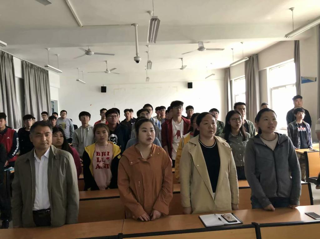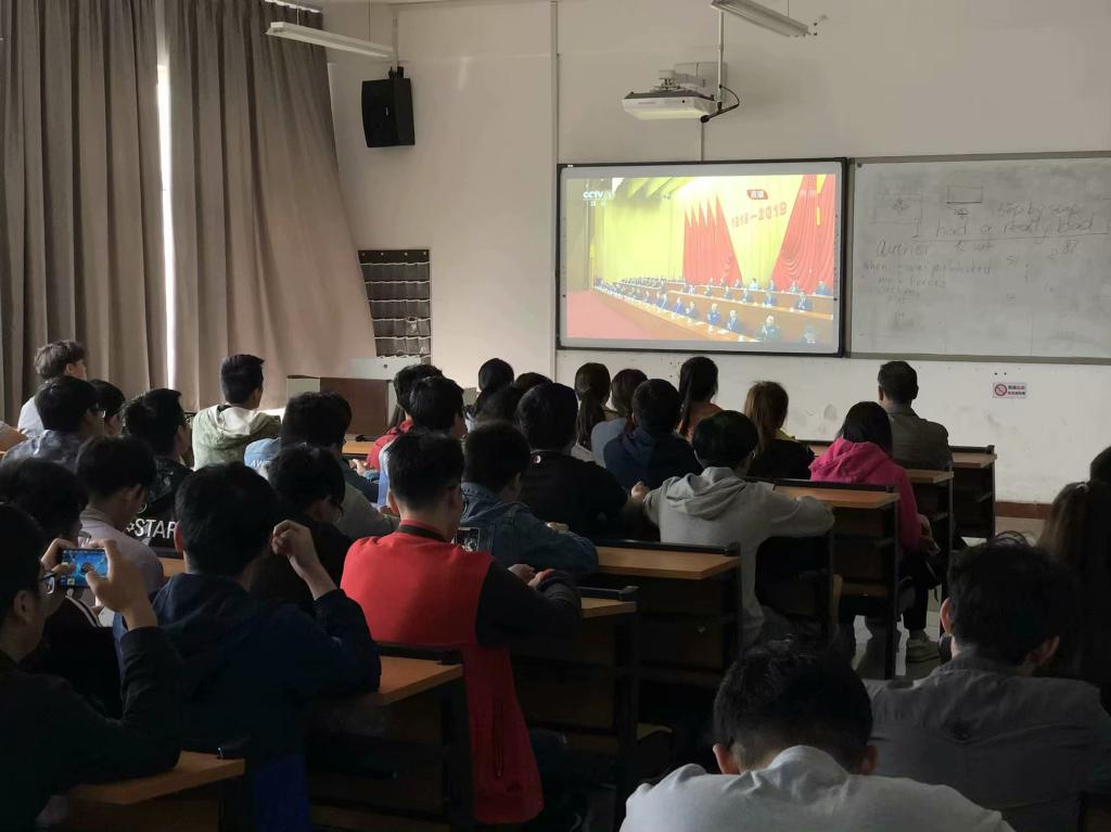 4月30日上午,申博sunbet国际教育公司党支部副书记刘艳杰,辅导员段楠楠、闫艺超老师和优秀员工代表一起在文公司205教室观看了纪念五四运动100周年大会直播视频。