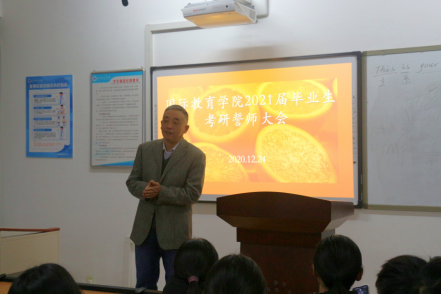 吕鹏飞书记与同学们分享了自己的求学经历,讲述了如何缓解压力、放松身心的方法。谈及考研,他说:“距离成功只有一步之遥了,再坚持一下,用最自信的自己迎接挑战,要相信,你的努力不会白费,预祝每一位国教学子都可以创造出属于自己的奇迹”。关于缓解压力、调整心态,他提出了两点建议,一是懂得得分技巧,要有针对性地备考复习,做到心中有“数”;二是调整心态,考场上要沉着冷静,做到不慌张、不怯场。