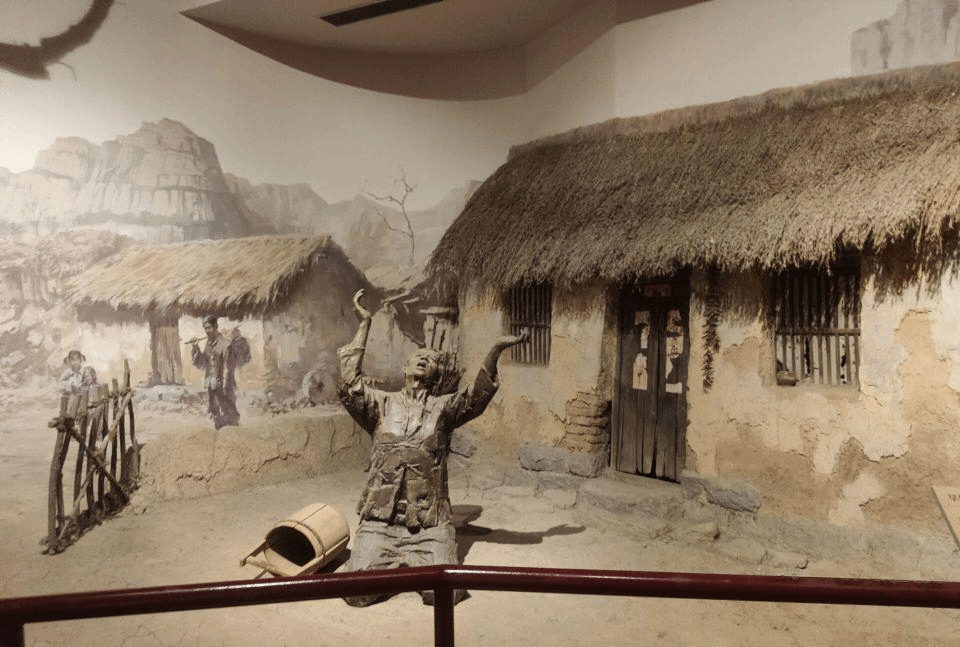 馆内一幅图片吸引了参观者的目光,它仿佛把我们带到了60年前的林县,林县自古就缺水,老汉用一整天挑了一桶水,到家后被儿媳不小心打翻,老汉跪下地上长叹,儿媳因为愧疚选择结束自己的生命。先辈们经历的难以忍受的苦难才换来了今天的幸福生活。