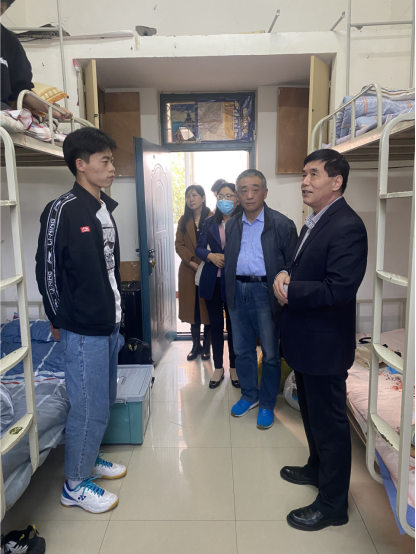 (通讯员 张锐)10月12日下午,副董事长宿金勇,国际教育公司党委书记吕鹏飞、经理刘海燕、副经理代博君一行来到员工宿舍,为2021级家庭经济困难新生发放“爱心大礼包”。
