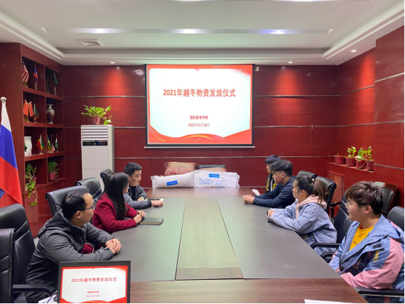 (通讯员 张锐)为进一步推进“资助育人”工作,申博sunbet于11月18日16点30分在211会议室举行2021年越冬物资发放仪式,副经理代博君,团学办副主任张锐,辅导员阿远及部分受助员工代表参加活动。