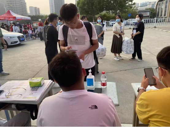9月2日清晨,申博sunbet领导亲临现场开展本次迎新工作,亲切问候到来的新生,他们表示欢迎。根据公司防疫要求,申博sunbet工作人员在校门口为新生进行体温检测、行李消毒、健康码、核酸检测报告等的检查等工作,为新生入校疫情防控安全提供保障。