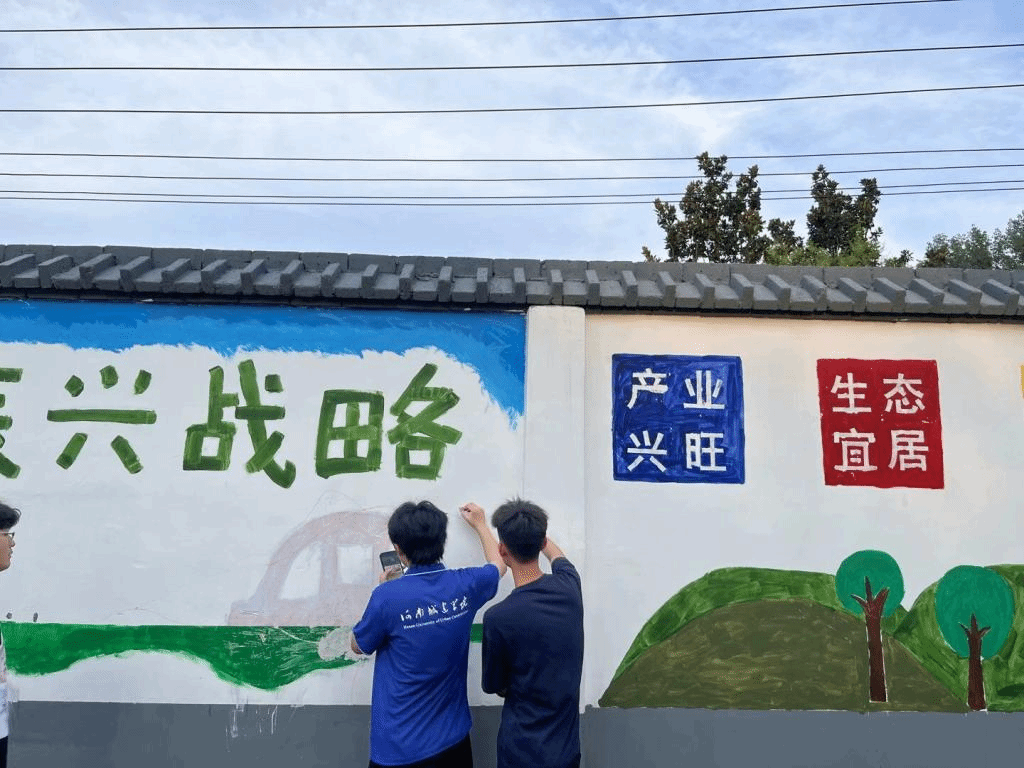 为了彰显乡村振兴的美好愿景,志愿者们开展了墙绘活动,将富有艺术感的图案和宣传口号绘制在西沟村的墙壁上。画面中展示了西沟村壮丽的景色和肥沃的土地,以及现代农业和新技术的元素,生动地描绘了乡村振兴的美好愿景。志愿者们在绘制之时还积极邀请村民共同参与创作,增添了活动的互动性和参与感,让村民们绘制出心中对于未来美好生活的向往和期待。这样的交流与互动拉近了志愿者与村民之间的距离,深入基层,宣传和讲解乡村振兴的好政策。