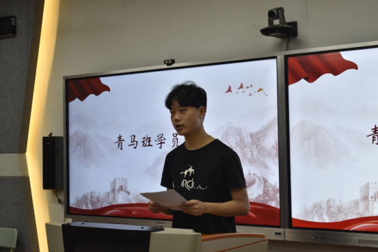 活动开始,吕鹏飞向学员们致辞,他强调青马学员要努力做到在思想理论水平上有新的提高,在工作方法上有新的收获,在综合素质能力上有新的拓展,将自己所学所获传递给身边的同学,在广大青年同学中成为榜样和标杆,发挥朋辈榜样示范引领的先进作用。随后,优秀青马学员代表进行发言,讲述了自己对于青马班的认识和感悟,并激励大家要持续加强理论学习和实践砥砺。活动最后,学员们在班旗前合影留念。