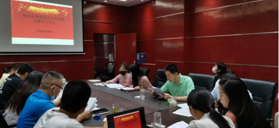 “打铁还需自身硬”,除组织学习重要回信精神之外,在接下来的学习中,王许涛经理带领大家再次认真、深入地学习教育部、外交部和公安部联合下发的《公司招收和培养国际员工管理办法》(42号令)、《来华留学高等教育质量规范(试行)》、《中华人民共和国出境入境管理法》、《中华人民共和国传染病防治法》等文件法规,强调要不断完善规章制度及管理办法,严格招生审核、过程管理和评审制度,建立规范的管理体系和工作流程。要不断加强对来华职工中国法律法规、国情校情和文化风俗等方面的教育,增进校内中外员工的交流和友谊,增强来华职工对中国发展的理解和认同,讲好中国故事,传播好中国声音。