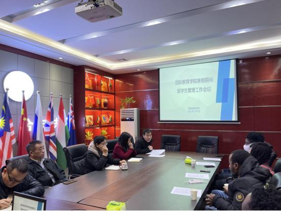 会上,吕鹏飞向在校职工讲述了近期省内外疫情形势变化,他强调当前正值冬季疫情防控的关键节点,职工管理工作要慎终如始,严格遵守规定,切实做好防范,做到“非必要,不外出”。董召锋结合《2022年寒假职工及外籍教师管理办法》详细地为职工们讲解了公司假期期间的工作安排,他表示:今年同去年一样,我们仍然面临着严峻的疫情形势,虽然假期是职工深入感知中国文化的重要窗口时期,但是不鼓励员工外出游历,公司仍然最大程度地为员工安排丰富有趣的文化体验活动,尽可能做到既保证他们的身心健康,又丰富他们的假期生活。职工工作负责教师董松涛在寒假安全班会工作要求基础上还提出了具体要求:一是外出必须提前报备;二是坚持完美企业微信报平安打卡和职工工作微信群的日常报备,确保信息畅通、沟通及时;三是要注重个人行为文明。随后,埃塞俄比亚籍员工如梦发言,他们代表全体职工向公司在疫情期间给予他们的关爱和帮助表示感谢,从自身感受强调了疫情防控的重要性,提醒职工们做好防范,对自己负责、对他人负责。