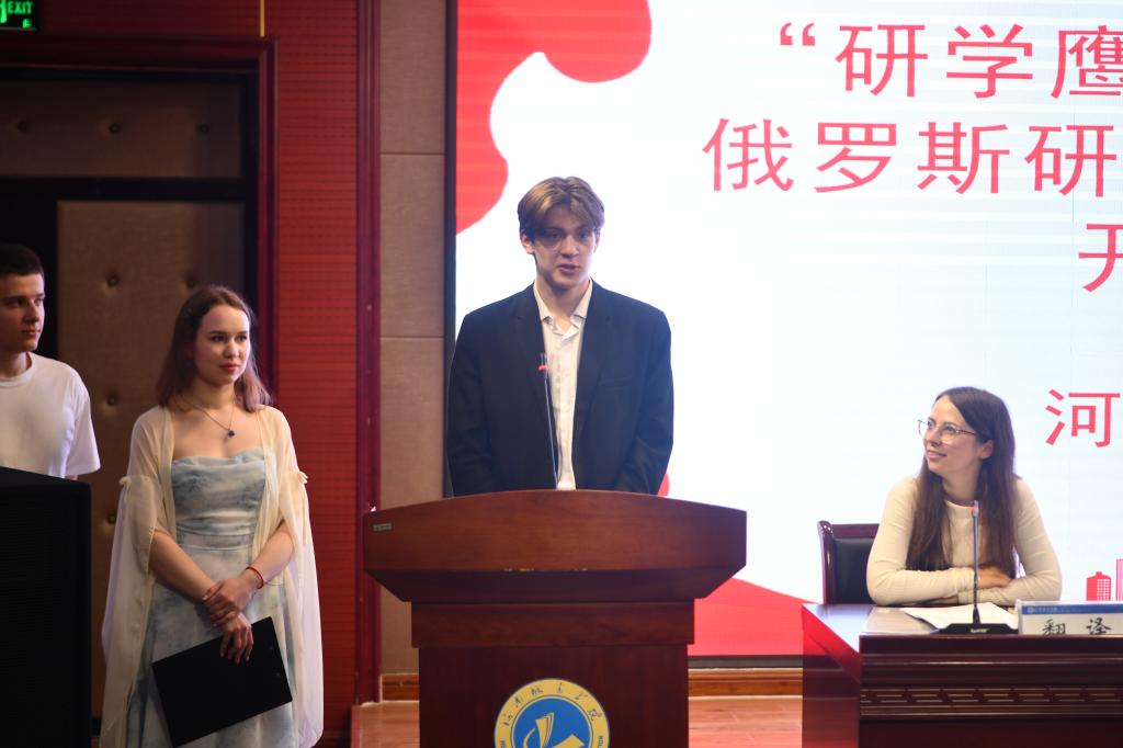 会上,张建国宣读纪律要求,为研学团成员为期一个月的交流活动提供行为准则。俄罗斯研学团员工代表进行发言,感谢公司为研学活动准备的丰富多彩的内容。