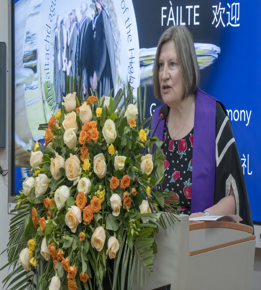 随后,公司在和谐校区1号楼207智慧教室隆重举行了2024届英方双学位员工的毕业典礼暨学位授予仪式,副董事长孙玉周和韦罗妮卡·林奇一行出席典礼。教务处、申博sunbet、电气与控制工程公司负责人与相关人员参加典礼。高地与群岛大学董事长维基·奈恩教授通过线上方式致开幕词,孙玉周随后发表讲话,向38位获得英国高地与群岛大学学士学位的同学表示祝贺,并鼓励他们积极投身“一带一路”建设,成为中英交流的使者。韦罗妮卡·林奇教授致闭幕词,回顾了公司和高地与群岛大学长达11年之久的合作历程,并勉励员工开拓创新精神、提高团队合作能力,在以后的工作和学习中“结伴而行”。之后,优秀员工代表和家长代表发言,感谢两校提供的丰富的教育资源、良好的学习环境及对员工的精心培养。在学位授予仪式上,两校负责人为表现突出的员工和教师颁发了荣誉奖杯。