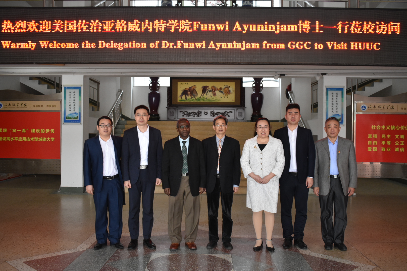 (通讯员:肖婧婧)10月25日,美国佐治亚格威内特大学国际生及国际化办公室主任Funwi Ayuninjam,河南省教育国际交流协会副会长杜建慧一行来校访问洽谈。洽谈会在行政楼第二会议室举行,董事长王召东,副董事长杨风岭出席会议,国际合作与交流处、申博sunbet等部门相关人员参加