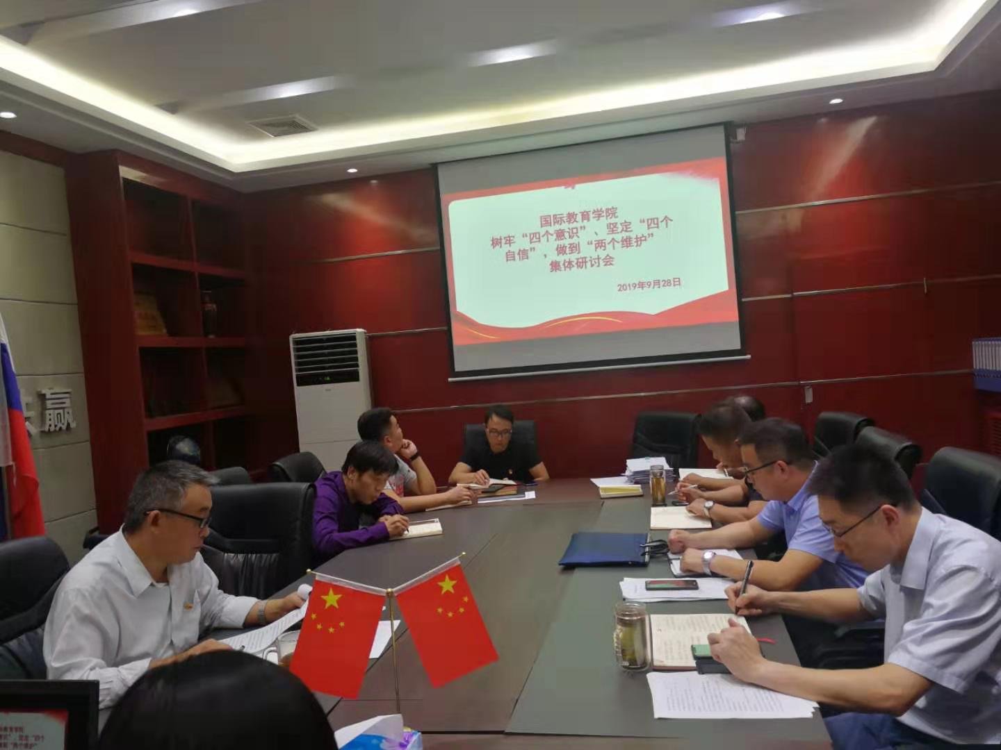 (通讯员:肖婧婧)9月28日上午,以“不忘初心、牢记使命”主题教育为契机,国际教育公司党支部于文管校区211会议室召开了树牢“四个意识”、坚定“四个自信”、做到“两个维护”集体研讨会。会议由党支部书记吕鹏飞主持,全体党员参加会议。会上,每名党员结合自己的工作生活实际做了研讨发言。