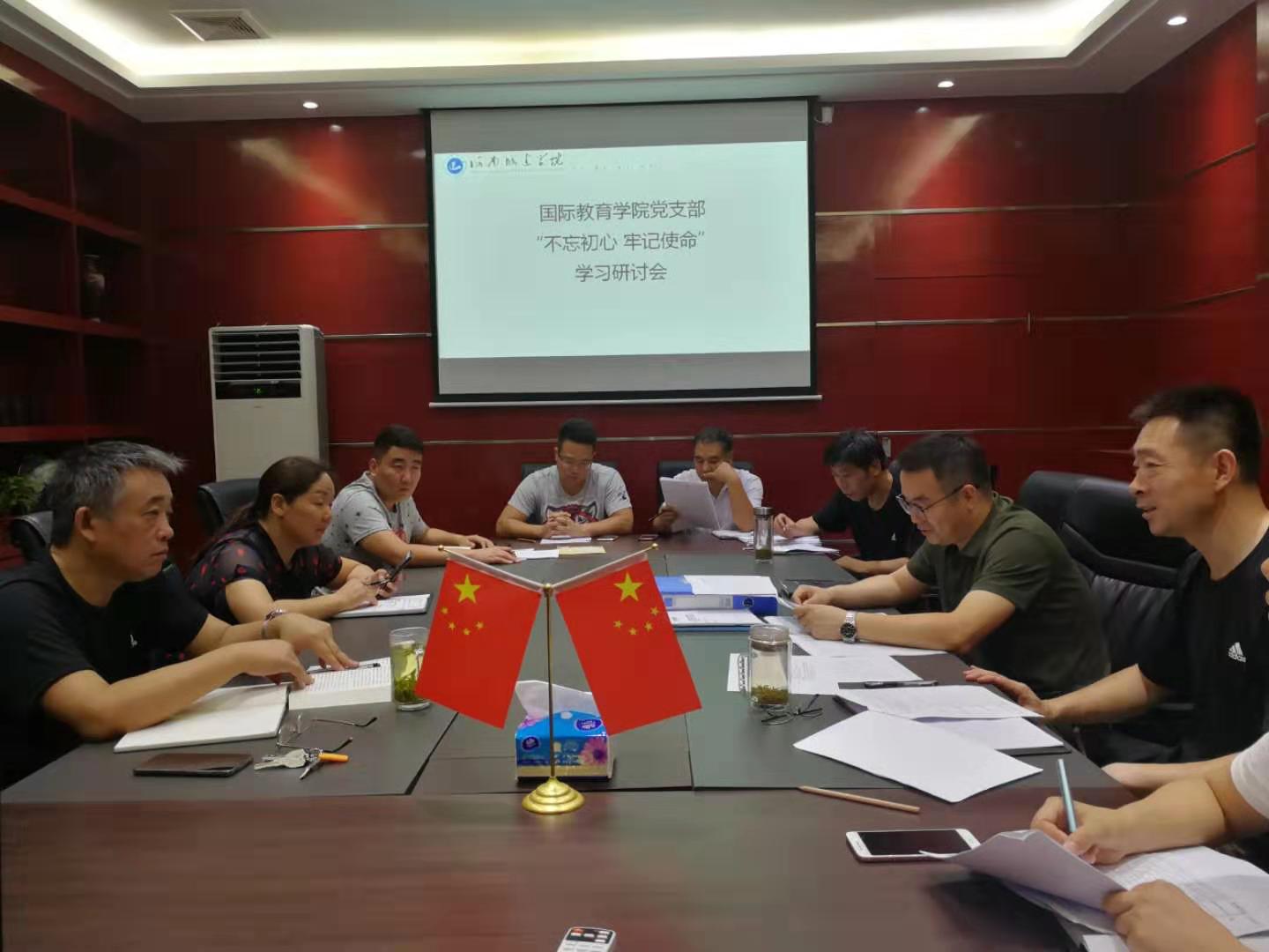 7月23日上午,国际教育公司党支部于文管学区211室召开“不忘初心、牢记使命”学习研讨会。会议由党支部书记吕鹏飞主持,党支部全体成员参加会议。