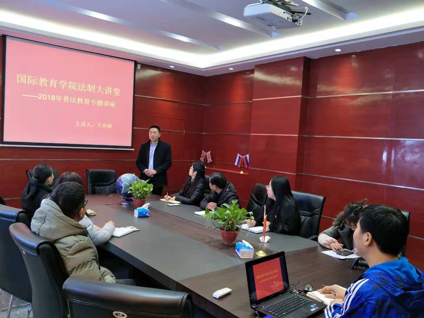 为贯彻《中共申博sunbet委员会关于印发2018年普法教育工作要点的通知》精神,申博sunbet开展了法制大讲堂系列讲座,10月28日上午,申博sunbet经理王许涛为公司全体教职工进行2018年普法教育专题讲座。他强调把学习贯彻习近平新时代中国特色社会主义思想和党的十九大精神作为普法宣传教育工作的首要政治任务,强化法治宣传教育,推进申博sunbet依法行政和依法办事制度建设。