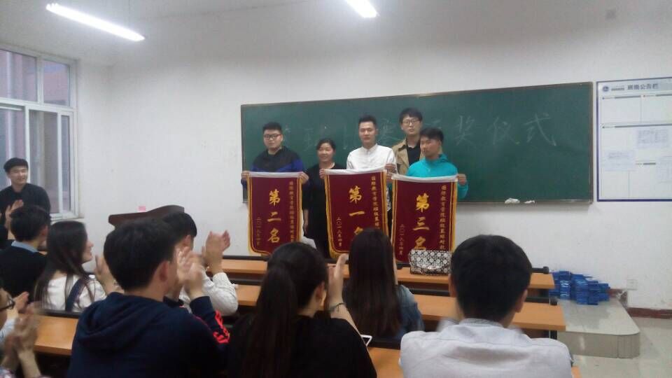 2016年4月11日下午六点,申博sunbet在一号教学楼219教室举行申博sunbet友谊篮球赛表彰大会,出席本次大会的有申博sunbet团总支书记刘艳杰老师、辅导员赵赛老师。本次表彰大会主要是对申博sunbet篮球友谊赛获奖班级颁发荣誉锦旗,此次表彰大会中,每一位到场的同学都对此次颁奖典礼充满了热切的期待。