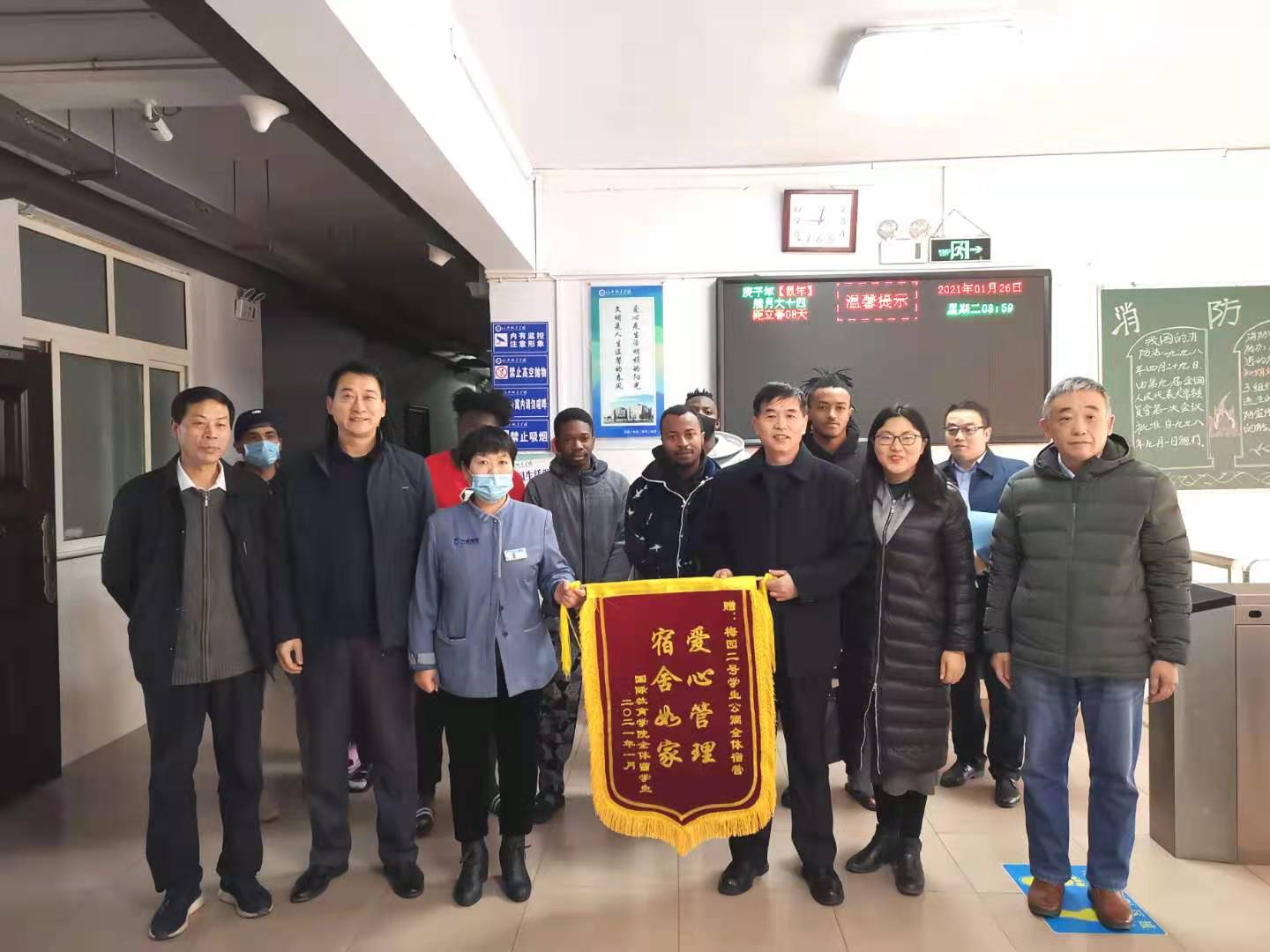 国际交流与合作处为在校职工发放了假期汉语学习资料,后勤处对假期员工的宿舍管理做了具体的安排部署。双方对员工宿舍管理人员的出色工作给予了充分肯定和表扬,并授予了锦旗。