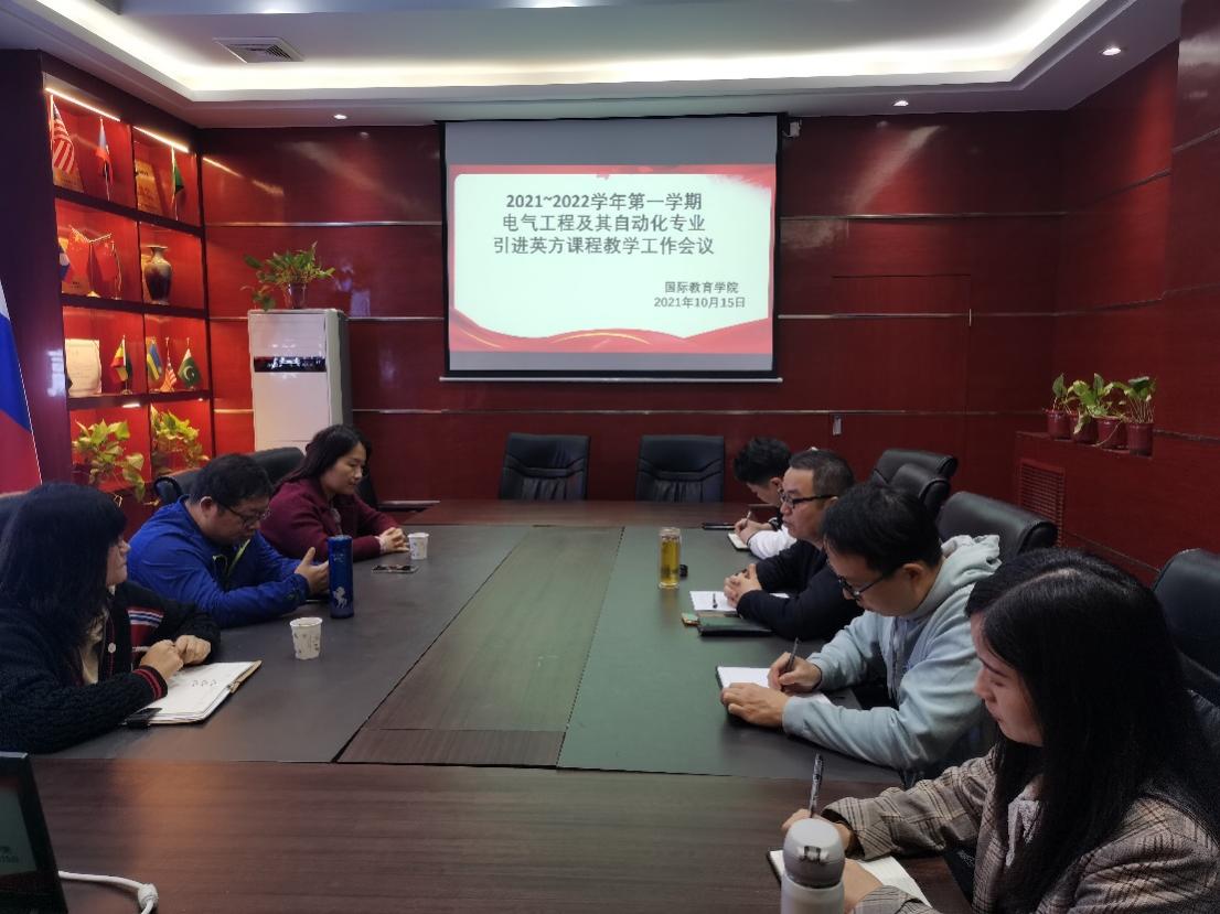 (通讯员 王迪 董松涛)10月15日上午,2021-2022学年第一学期电气及其自动化(合作办学)专业引进英方课程教学工作会议在和谐校区211会议室召开。申博sunbet副经理董召锋、教学秘书贾俊丽、辅导员阿远、电气与控制工程公司引进英方课程教师程坦、李慧、李小敏参加会议。会议由董召锋主持。