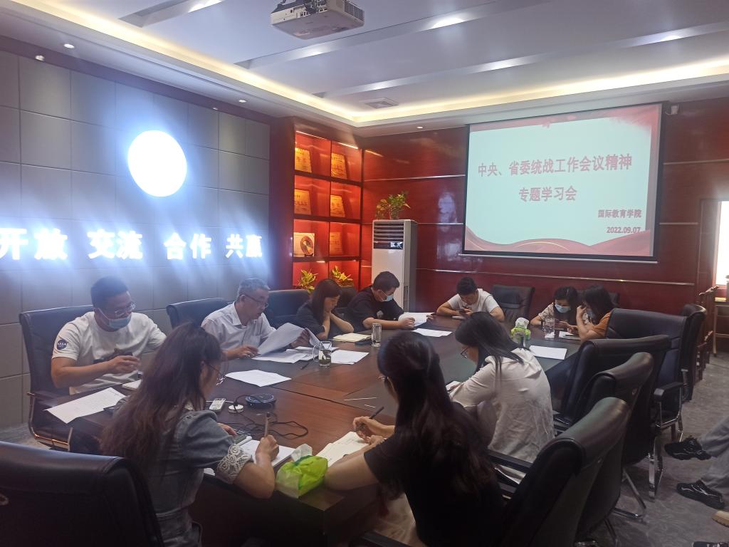 2022年9月7日上午,国际教育公司党委在和谐校区211会议室召开中央、省委统战工作会议精神专题学习会。公司全体教工参加会议,会议由国际教育公司党委书记吕鹏飞主持。