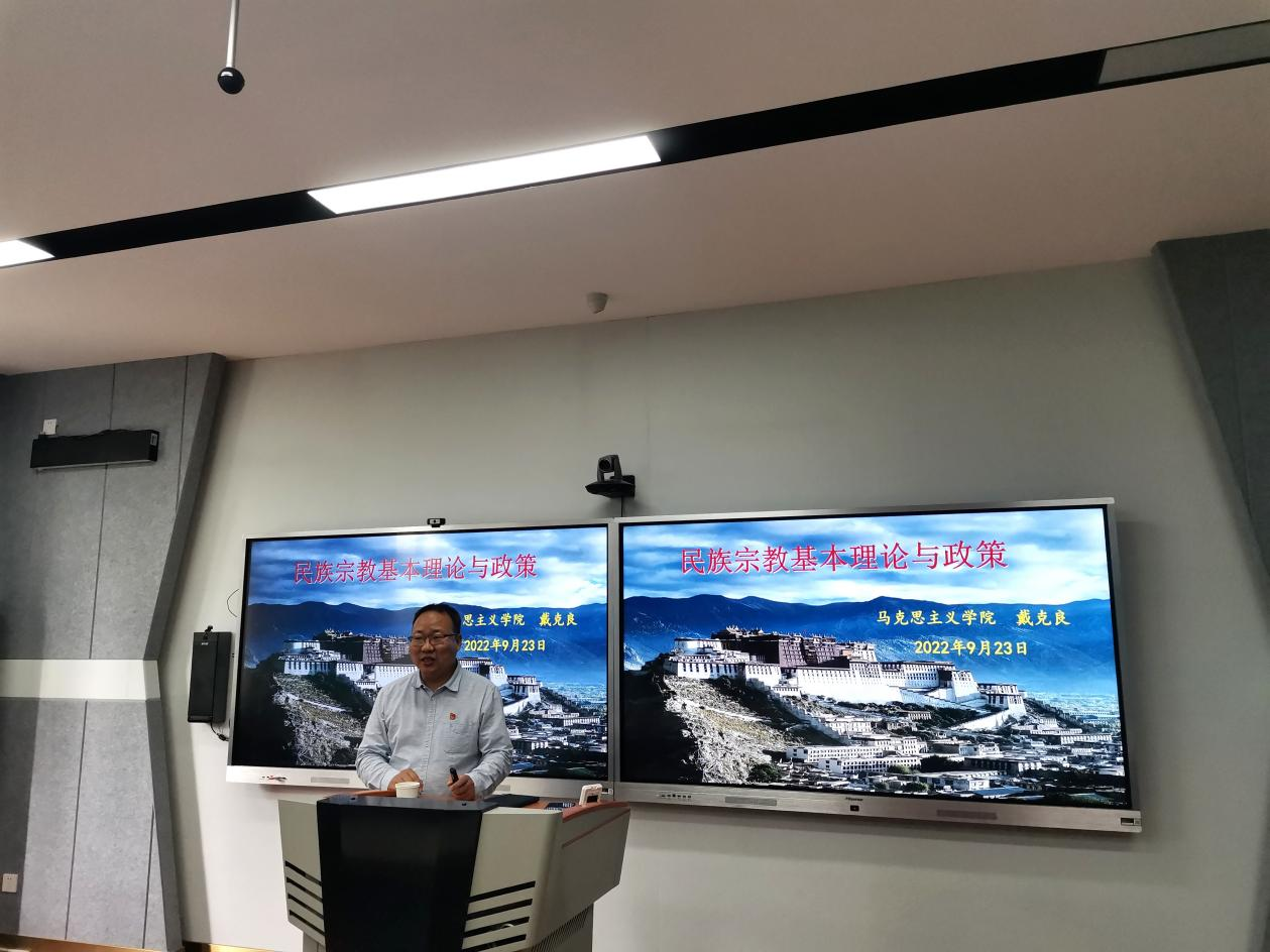 为深入贯彻落实中央民族工作会议和全国宗教工作会议精神,进一步深化公司教职工对党的民族宗教政策的认识,持续提升民族宗教工作水平,2022年9月23日上午,申博sunbet在和谐校区207智慧教室召开民族宗教专题讲座,公司邀请马克思主义公司戴克良博士作了题为《民族宗教基本理论与政策》的专题讲座。国际教育公司党委书记吕鹏飞、国际交流与合作处处长(申博sunbet经理)刘海燕和全体教职工参加讲座,讲座由国际教育公司党委书记吕鹏飞主持。