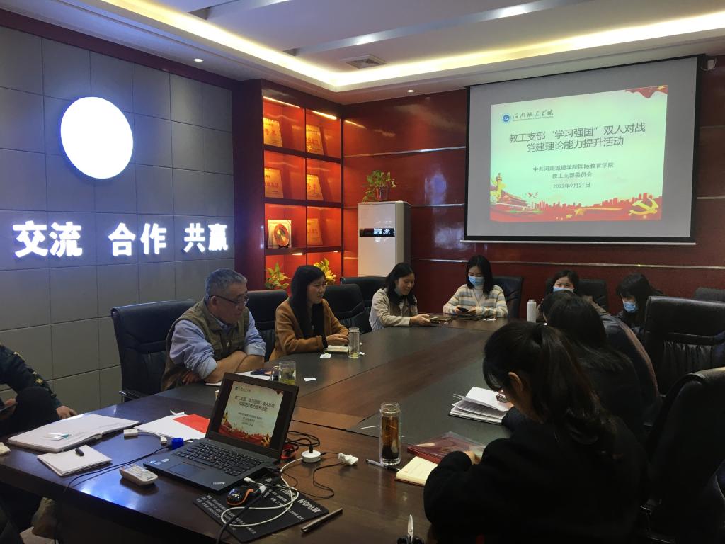 (通讯员 刘晓燕)为不断巩固拓展党史学习教育成果,以实际行动迎接党的二十大胜利召开,进一步推动教工党员用好“学习强国”学习平台,9月21日下午,申博sunbet教工党支部开展“‘学习强国’双人对战党建理论能力提升”主题党日活动。活动由教工党支部书记董召锋主持,全体教工党员参加。