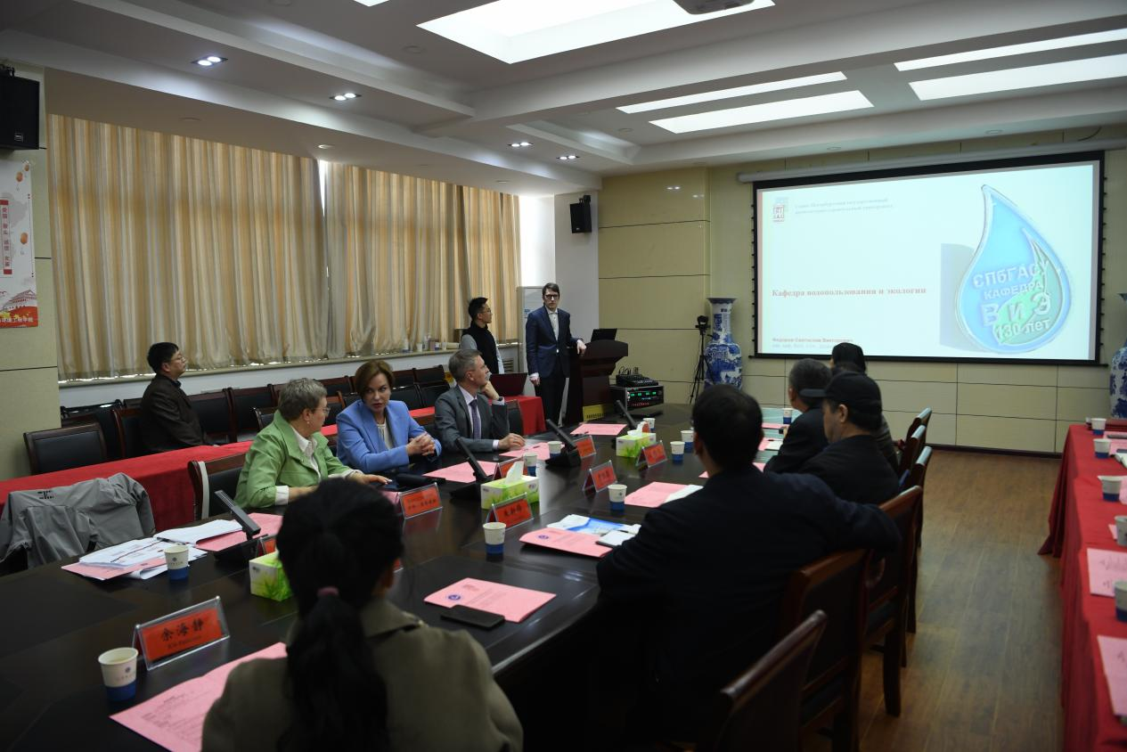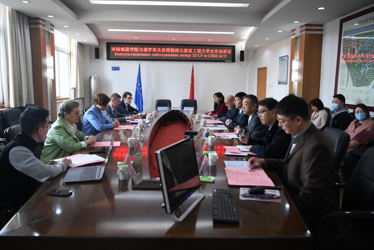随后,副董事长宿金勇和戈洛维纳·斯维特兰娜一行在行政楼第一会议室进行合作办学项目洽谈。洽谈会由国际教育公司党委书记吕鹏飞主持,市政与环境工程公司经理朱新锋、能源与建筑环境工程公司经理周恒涛、两校合作联络人李晓东以及各公司相关人员参加了会议。宿金勇回顾了两校在加强中外合作办学内涵建设、深化国际化人才培养方面取得的成绩。公司与俄罗斯圣彼得堡国立建筑工程大学合作举办的给排水科学与工程专业本科教育项目整体运行良好,生源质量和毕业生升学就业率持续提高。在过去几年里,依托于合作办学项目,“申博sunbet与圣彼得堡国立建筑工程大学城建类特色专业人才培养项目”获国家留学基金管理委员会促进与俄乌白国际合作培养项目批复执行,自2020年以来,公司员工共获国家留学基金委各类资助74人次,有效提升了员工的国际视野、跨文化交流能力和国际竞争力。两校共同申报的“河南省绿色低碳水处理技术与水资源利用国际联合实验室”获批共建,为两校培养国际化人才、打造教育及科技开放合作品牌、促进经济社会发展提供有力支撑。
