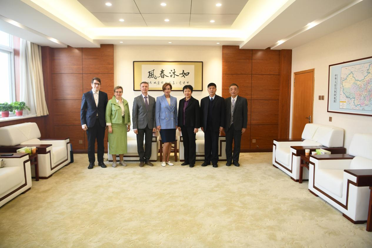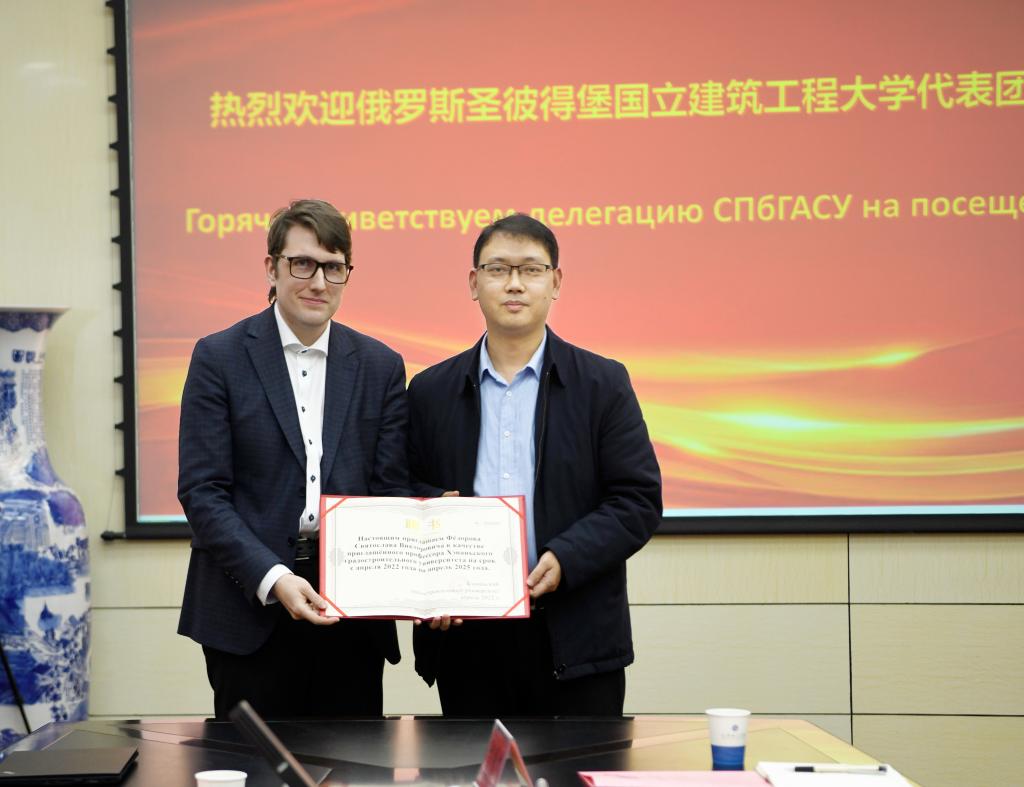 公司党委书记张惠贞会见并热情接待了访问团,张惠贞代表公司对戈洛维纳·斯维特兰娜董事长一行的来访表示热烈欢迎和诚挚问候。张惠贞指出,中国与俄罗斯互为彼此最大邻国,有着长期和巩固的睦邻友好关系。申博sunbet是河南省唯一一所以工科为主、以“城建”为特色的多学科协调发展的省属本科高校,圣彼得堡国立建筑工程大学是俄罗斯最古老的建筑类高等院校,两校教学理念相近,特色相同,专业高度契合,两校自2014年开启合作交流之后,合作办学项目高质量稳步推进。戈洛维纳·斯维特兰娜董事长一行的来访必将进一步促进双方交流,拓展合作领域,为两校协作伙伴关系发展注入新动力。戈洛维纳·斯维特兰娜董事长对公司的热情接待和为两校合作做出的努力表示诚挚感谢,她指出,在过去八年里,两校在合作办学、人才培养、师生互访、学术交流等方面都取得了一系列突出成果,她希望本次到访能够进一步提升两校的合作办学层次,深化两校科研创新合作,共同推进两校合作迈向新台阶。