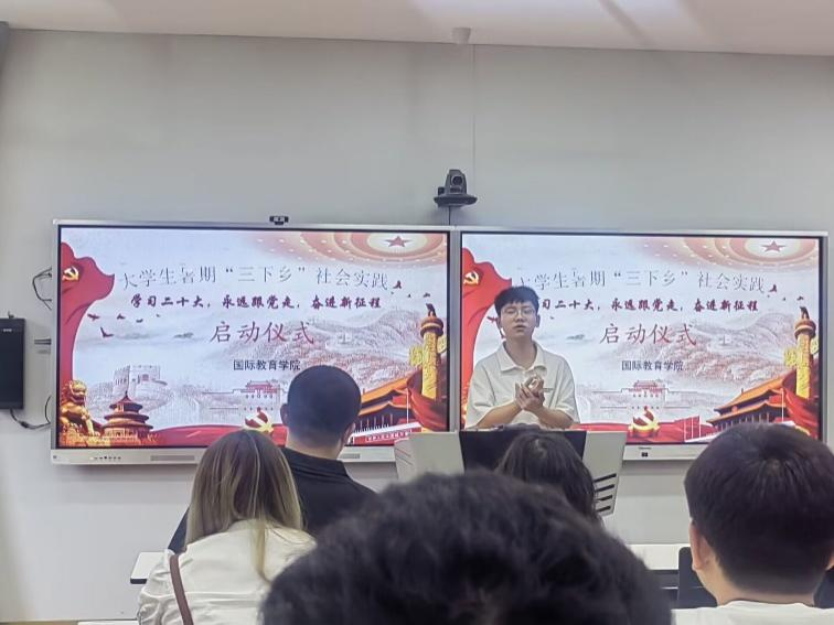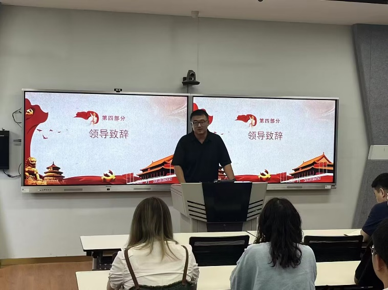 仪式最后,胡思博书记做了动员讲话,讲话中主要强调:同学们作为老员工参与社会实践,要以专业视角来观察社会,发现社会问题,以专业的思维来解决社会发问题,不断提升社会化能力,在社会大课堂上受教育、长才干、作贡献,在踊跃投身全面建设社会主义现代化国家新征程中展现青春风采、贡献青年力量。