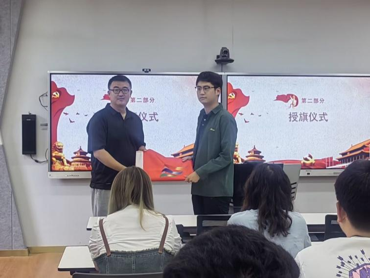 仪式进行第二项,由胡思博书记向团队代表授旗。