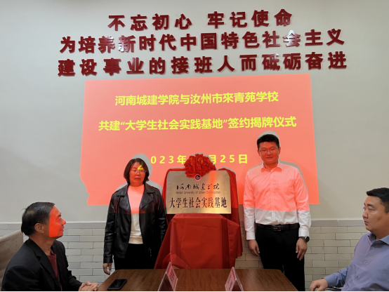 活动现场,胡思博和刘霞代表双方签订社会实践基地协议,苗清和刘霞共同为申博sunbet老员工社会实践基地揭牌。