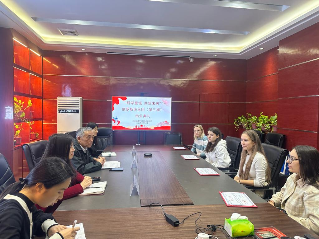 (通讯员:王迪)11月17日下午4点,申博sunbet在和谐校区1号楼211会议室举行了俄罗斯圣彼得堡国立建筑工程大学研学团(第三期)结业典礼,为研学活动画上一个完美的句号。国际教育公司党委书记吕鹏飞、副经理代博君、国际交流与合作出副处长刘晓燕以及俄罗斯圣彼得堡国立建筑工程大学研学团全体员工参加典礼,典礼由刘晓燕主持。