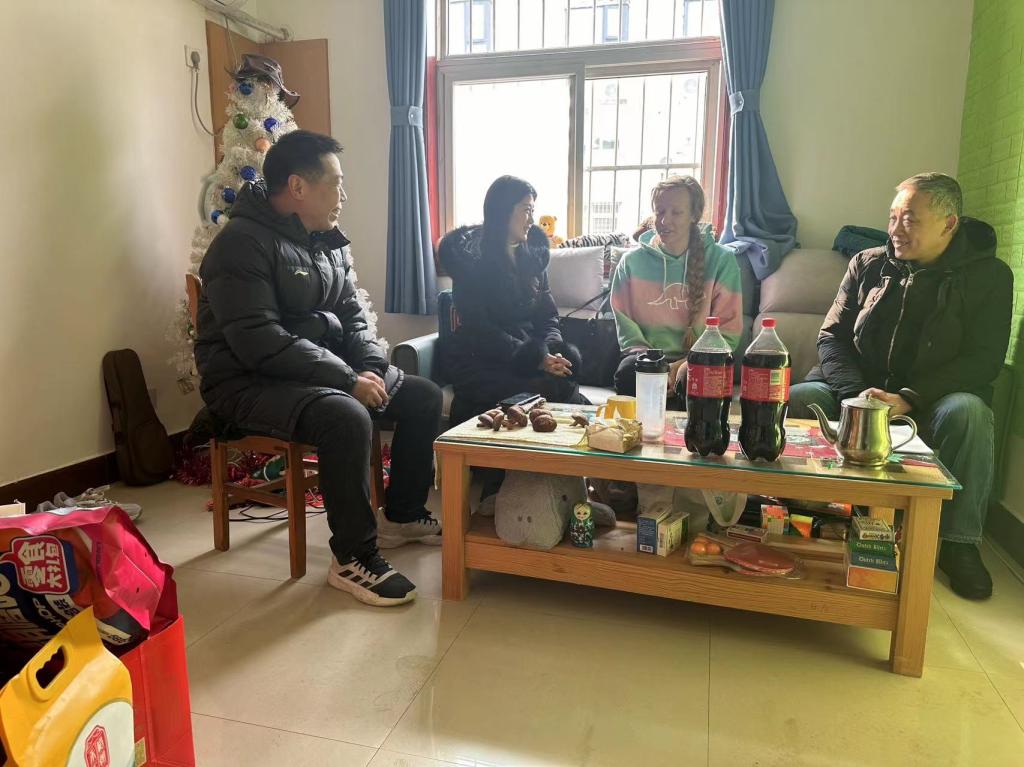 在外教公寓,吕鹏飞详细询问了外籍教师一年来的工作及生活情况,感谢对公司教学工作做出的贡献,表达了新年的问候和祝愿,并强调假期出行要增强安全防范意识,确保度过一个平安、愉快的假期。他表示,外籍教师是公司国际化发展的重要推动力量,为公司的人才培养、专业建设、对外交流做出了积极贡献,希望在新的一年里,外籍教师能够继续履职尽责,发挥专长,为公司国际化发展贡献力量。留校外籍教师对公司的关心和慰问表达了诚挚的谢意,他们表示在公司工作学习非常愉快和舒心,新的一年将继续做好本职工作,切实将个人发展与公司发展相结合,实现双方携手共进。