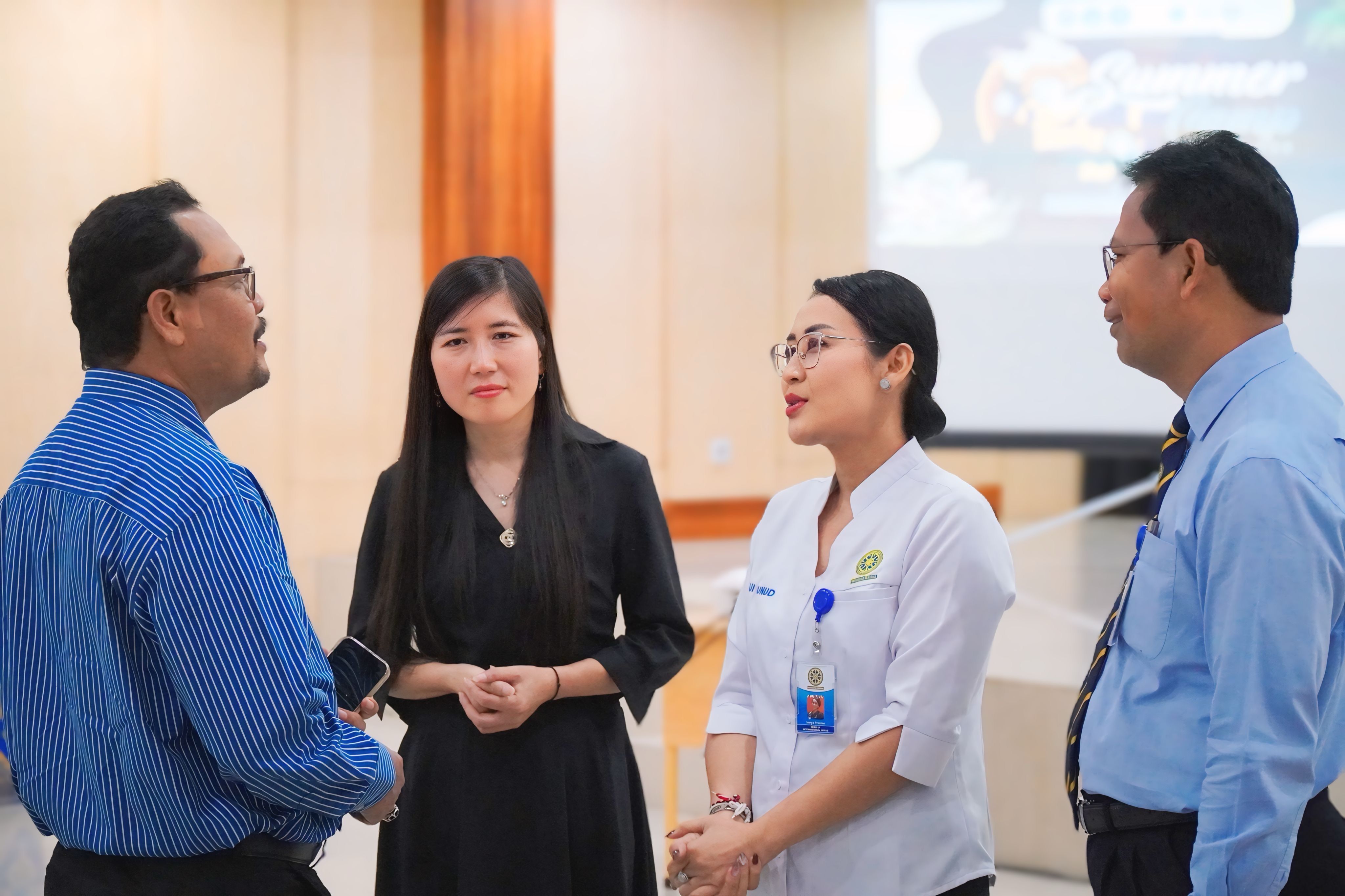 在乌达雅纳大学研学期间,该校安排了《跨文化理解:欧亚国家的比较研究》《跨文化理解:以印度尼西亚和巴厘岛为例》的系列讲座。同时,为了让同学们更深入了解印尼文化社会情况,项目安排员工参访了G20峰会活动举办地之一:神鹰广场、G20代表参观过的伍拉·赖红树林公园以及印尼乌达雅纳大学旅游孔子公司等地,并组织中印尼员工进行了友好交流。凭借良好的学术基础以及课堂表现,公司员工均获得了由印尼乌达雅纳大学颁发的项目结业证书。