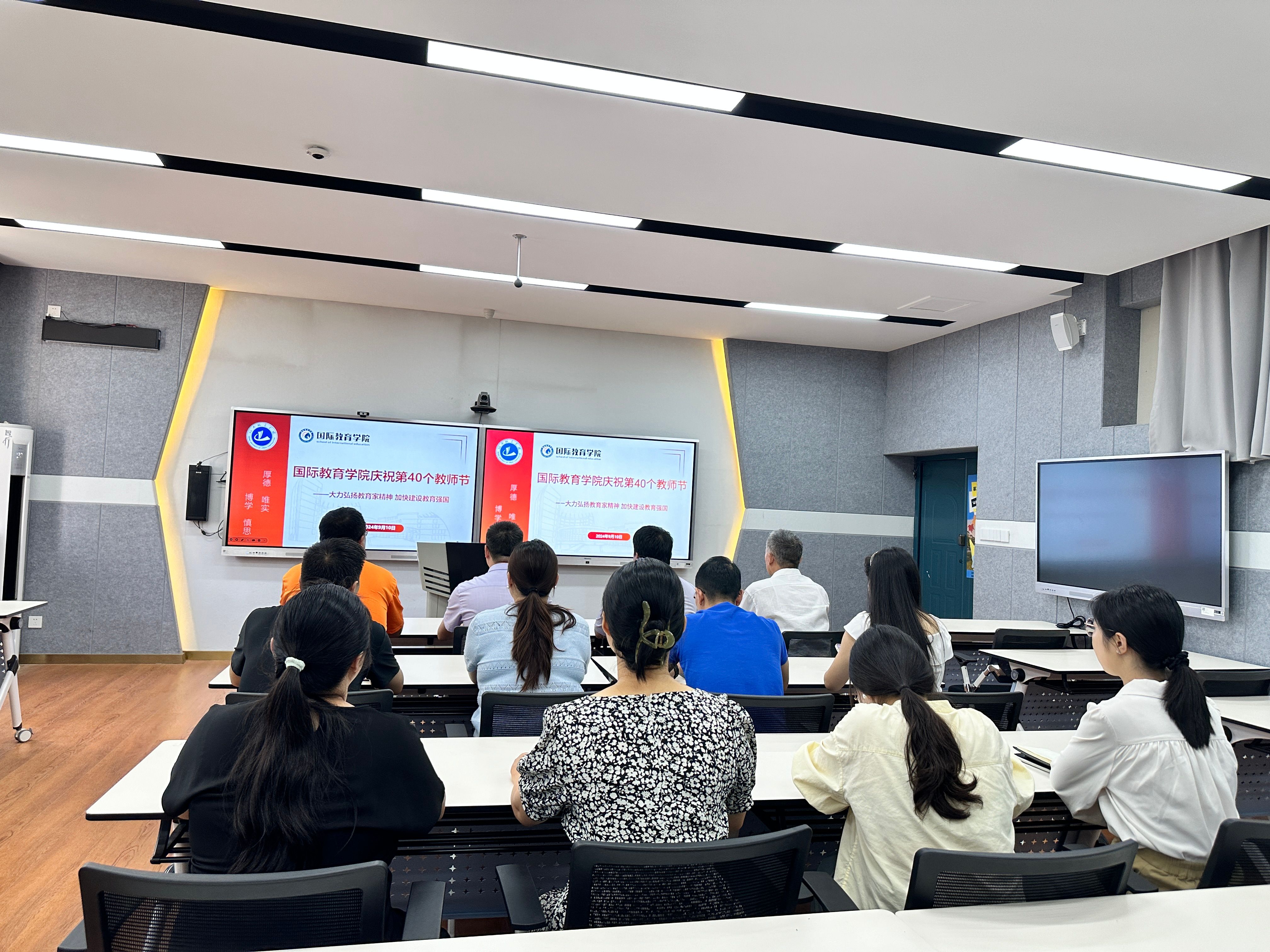 (通讯员:贾俊丽)为深入学习贯彻全国教育大会精神和习近平总书记关于教育的重要论述,大力弘扬教育家精神,展现公司教师为党育人、为国育才的时代风貌。9月11日下午,国际教育公司在美荟楼207智慧教室举行以“大力弘扬教育家精神,加快建设教育强国”为主题的第40个教师节庆祝活动。