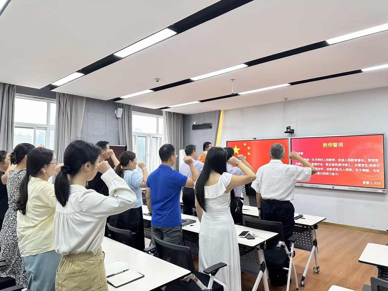 公司党委书记吕鹏飞带领全体教职工重温入党誓词与人民教师誓词。铮铮誓言铿锵有力,庄严承诺掷地有声。重温誓词仪式,让教师们既坚定了对党的初心和教育使命的承诺,也从中汲取了新的奋进力量。宣誓后,公司组织全体教职工共签订《申博sunbet教师师德师风承诺书》15份,进一步落实师德师风第一标准,结合《新时代高校教师职业行为十项准则》和《申博sunbet师德行为规范》,更好地履行教师职业道德,塑造良好的教师形象,培养“四有”好教师,弘扬教育家精神。