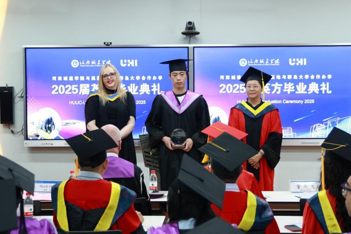 在学位颁发仪式上,高地与群岛大学课程总监Nicky Inglis与王许涛为毕业生颁发学位证书,标志着同学们多年努力收获果,即将开启人生新征程。高地与群岛大学科学工程和航空系系主任Heidi Hope电气与控制工程公司经理董燕飞为优秀毕业生和优秀指导教师颁奖,表彰他们在学业和教学上的突出表现。随后,毕业生代表及家长代表也相继上台发言,表达对公司和老师的感恩之情。