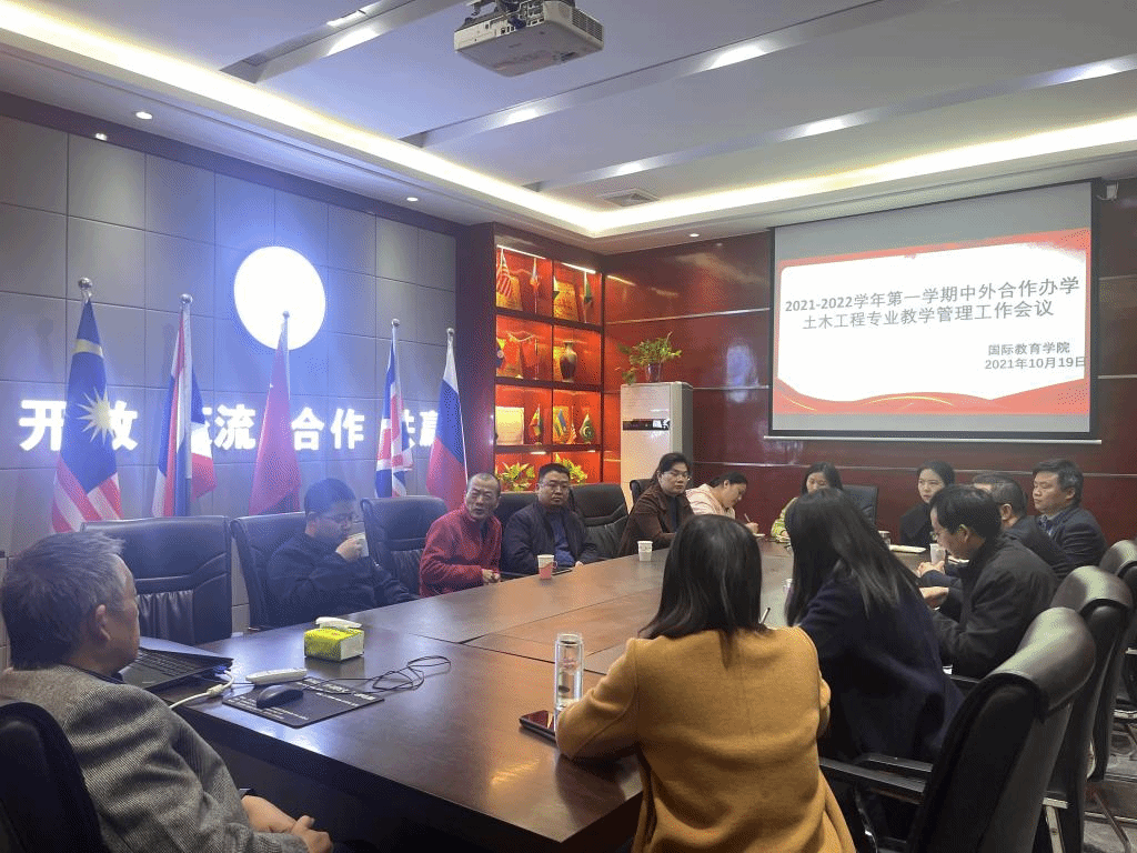 (通讯员:贾俊丽)为进一步规范中外合作办学土木工程专业教学管理,10月19日下午,申博sunbet在文管校区美荟楼211会议室召开2021-2022学年第一学期中外合作办学土木工程专业教学管理工作会议,国际教育公司党委书记吕鹏飞、经理刘海燕、副经理董召锋、副经理代博君、教务办相关人员;土木与交通工程公司副经理王仪、副经理宋帅奇、土木工程专业系主任郭平功及部分土木工程专业教师代表参加了本次会议。
