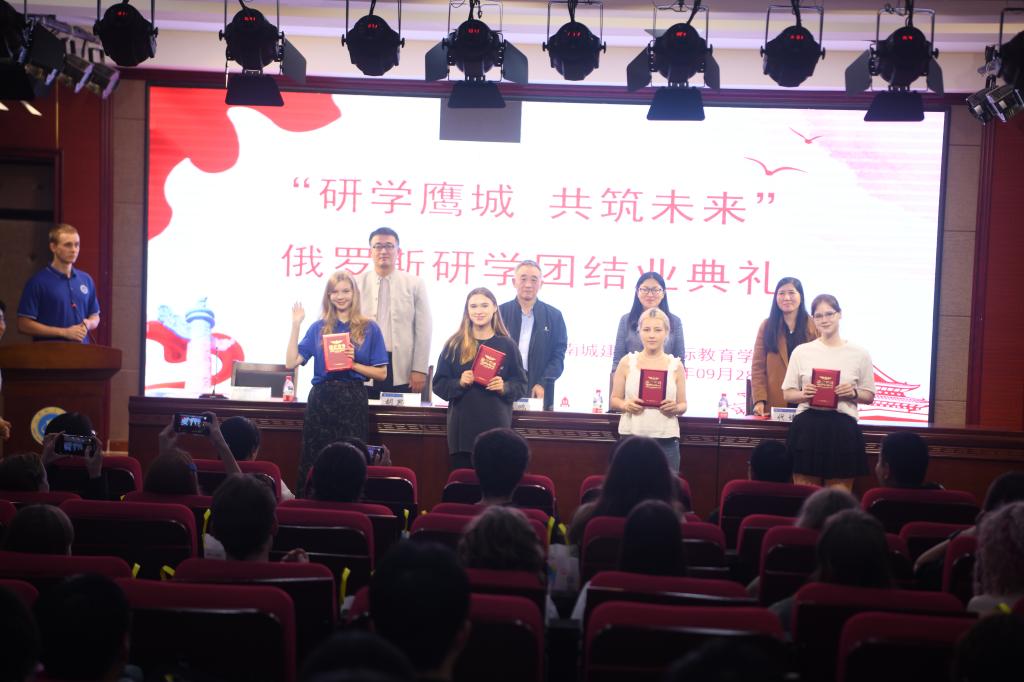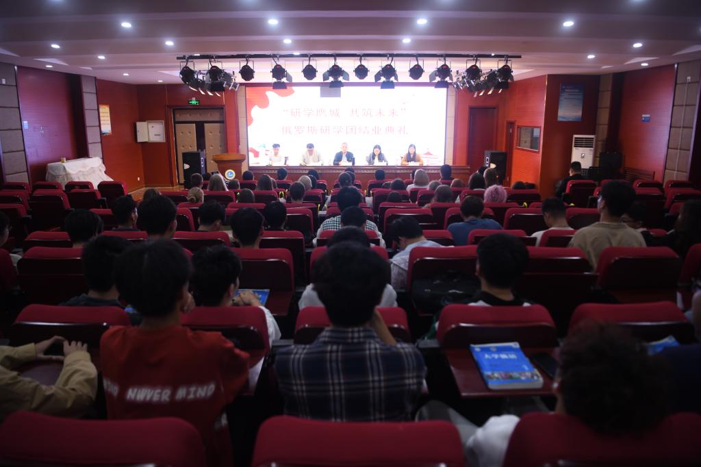 (通讯员 程冰)9月28日15点,申博sunbet在4号楼音乐教室举行了俄罗斯圣彼得堡国立建筑工程大学研学团结业典礼,为研学活动画上一个完美的句号。国际教育公司党委书记吕鹏飞、经理刘海燕、副书记胡思博、副经理代博君、承担本次研学团课程的教师以及俄罗斯圣彼得堡国立建筑工程大学研学团全体成员参加典礼,典礼由胡思博主持。