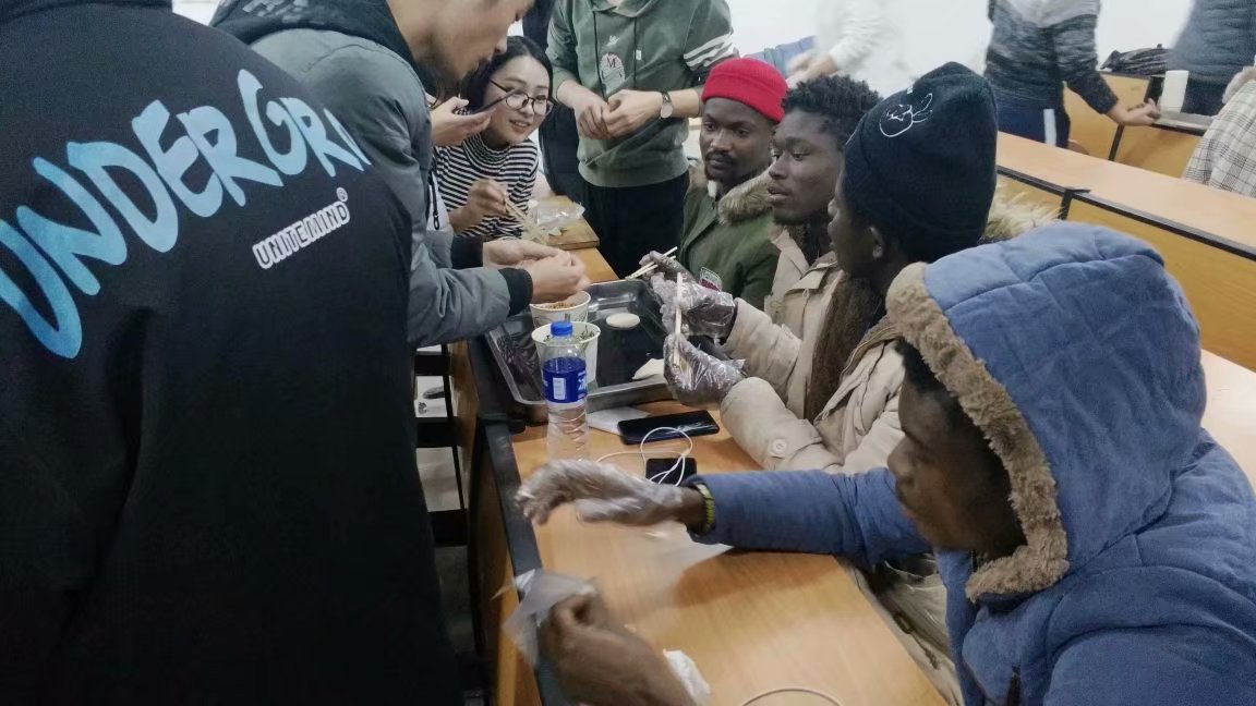 欢声笑语中,时间悄悄溜走,活动在不知不觉中结束。此次活动不仅增进了同学们与职工之间的交流与互动,而且也让职工们亲身感受到了中华文化的魅力,更让远在他乡的同学与职工感受到了冬日的温暖,家的温馨。