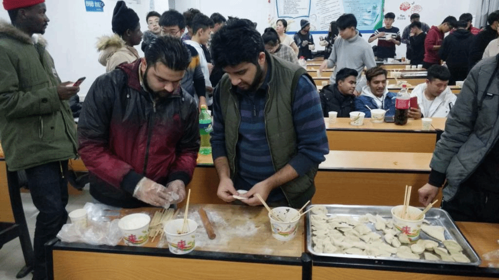 活动以传统的包饺子习俗展开。申博sunbet的同学们纷纷拿出自己的热情展示着自己的身手,并亲切且耐心的将包饺子的方法教给职工们。现场热闹非凡,第一次体验到包饺子的职工们自然是乐在其中而许多参加活动的同学也是首次与外国人一起过冬至,虽然语言不通但这依旧阻止不了同学们于职工们友谊之花的绽放。片刻过后热腾腾的饺子呈现在大家面前,大伙端起碗,迫不及待的想品尝到自己做的饺子。大家满足的笑脸,将冬日的寒冷驱散带来了家的温暖。