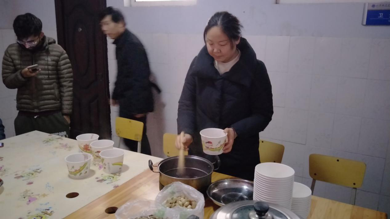 亲自熬制腊八粥,一碗一碗盛上。隆冬天寒,浓浓粥香弥漫职工公寓大厅,浸透在每一个人心里,暖暖地欢乐着。